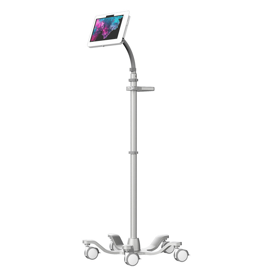 - Compatibel met VESA-montageconfiguraties 50 | 75 | 100 en cases - Kenmerken zijn: flexibele arm, verstelbare handgreep, vijf gladde glijvergrendelingswielen, en VESA-aansluiting - Bevestig de behuizing aan de wagen via VESA 50 | 75 | 100 - Flexibele zwanenhalsarm maakt het mogelijk de tablet aan te passen aan de unieke kijkhoek van elke gebruiker - Tablet kan worden aangesloten op de kar met behulp van een behuizing of een standaard VESA-montageconfiguratie. - Naleving van ADA, UL/IEC 60601-1 Fysieke eisen, RoHS en REACH - Breid het gebruik uit met de volgende accessoires: werkoppervlak, mand en power hub-houder