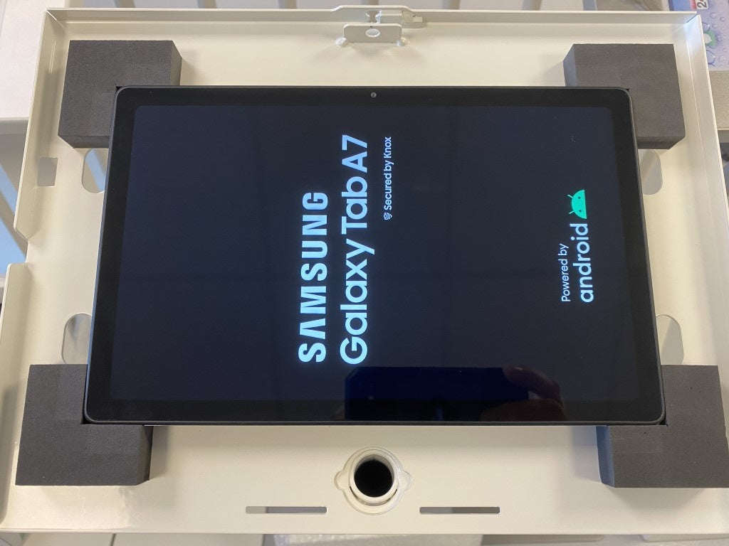 De Samsung Galaxy TAB A7 10.4 (2020/ SM-T500/T505) ligt volledig ingesloten in de houder en wordt door rubberenstrips beschermt tegen beschadigingen. De Tabboy XL heeft de mogelijkheid om de tablet te gebruiken in staande of liggende positie. De camera functie kan gebruikt worden.