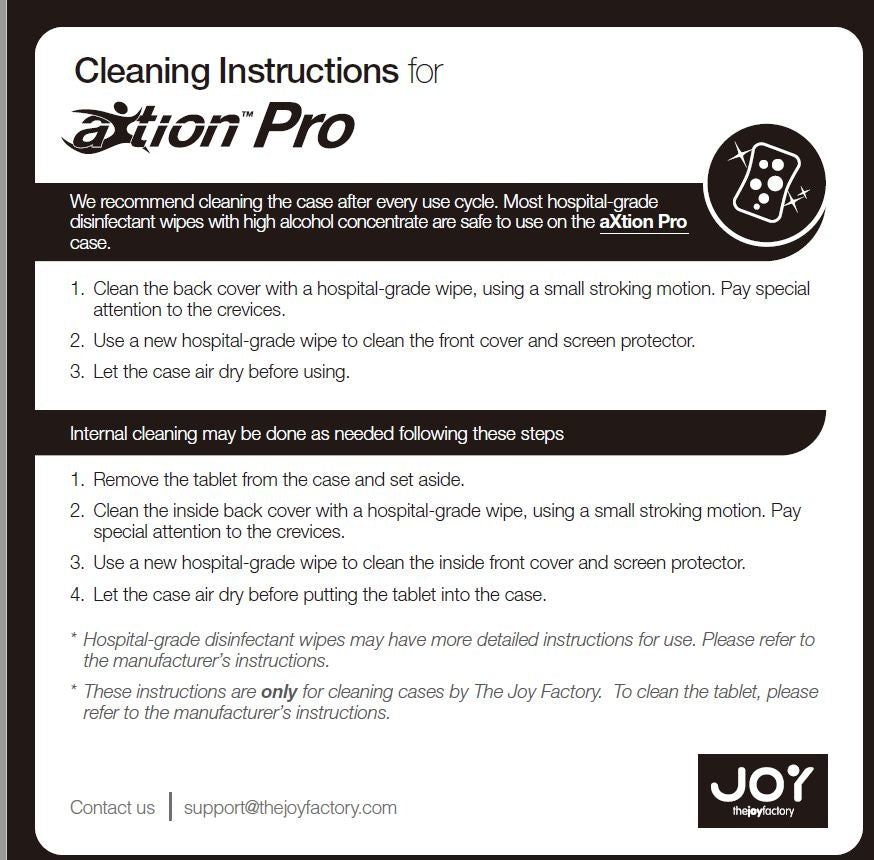 Deze volledig gesloten behuizing is voorzien van ThermoDefend ™, onze nieuwe gepatenteerde warmteafvoertechnologie om de prestaties van het apparaat te behouden. De case is doordrenkt met IonPure®, een antimicrobieel middel, om te helpen voorkomen dat bacteriën en schimmels groeien. Belangrijk is ook dat het niet gaat om een coating, maar dat deze stof is ingebracht tijdens de productie. Hierdoor kan de case langere tijd gebruikt worden ook met hoge temperaturen, of als de tablet zelf opwarmt door langduring gebruik. Ook over de binnenkant is nagedacht. Speciale reinigingsinstructies zijn ontwikkeld per case zodat je ook de binnenkant goed schoon kan houden en je case blijft voldoen aan de hoge eisen. Er is ook zeker nagedacht over de reguliere reiniging vereisten die moeten worden nageleefd in de zorginstellingen.