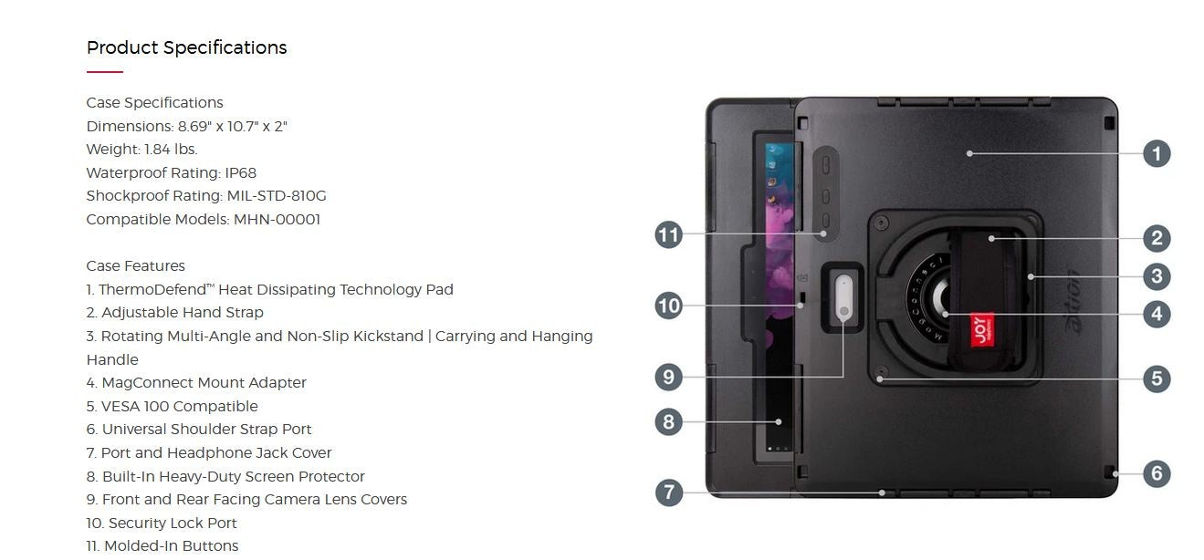 De aXtion Pro MP voor de Surface Go is de meest robuuste case in zijn soort voor mobiele werkers in een industriële omgeving. De volledig dekkende case is waterdicht én van militaire kwaliteit. De aXtion Pro MP beschermt niet alleen tegen water en valpartijen, maar bevat ook de nieuwe warmteafvoerende ThermoDefend technologie die is ontwikkeld door The Joy Factory die ervoor zorgt dat je Surface Pro nog langer meegaat!