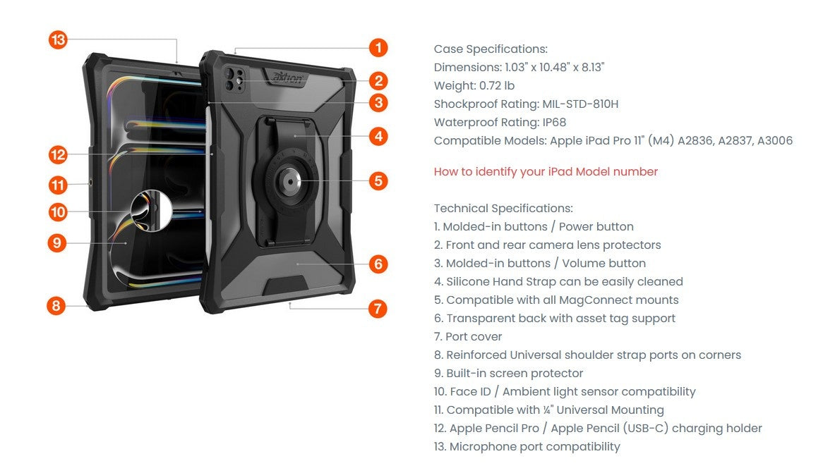 Compatible Models: Apple iPad Pro 11" (M4) A2836, A2837, A3006