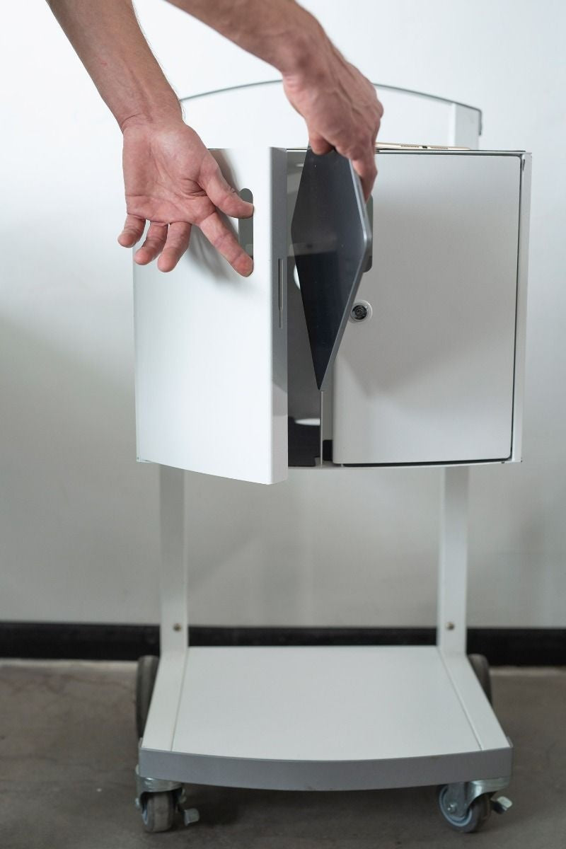 De CartiPad Uno combineert onze CartiPad Solo beveiligingslaadkast met onze CartiPad Cart.