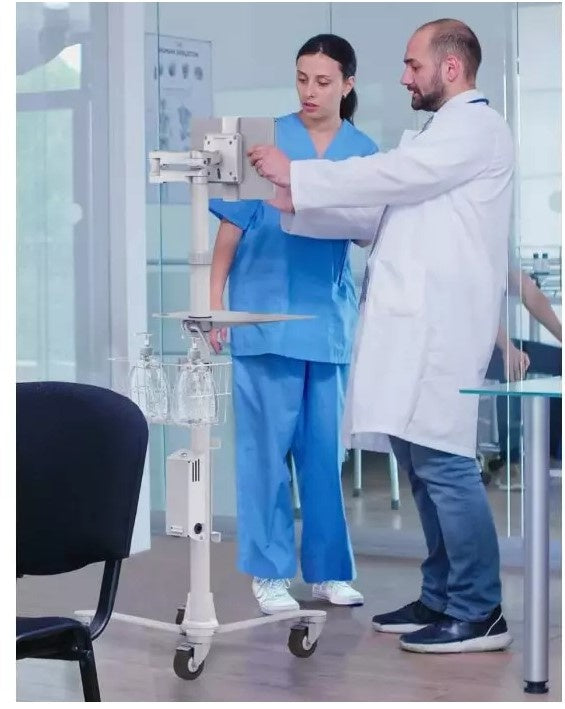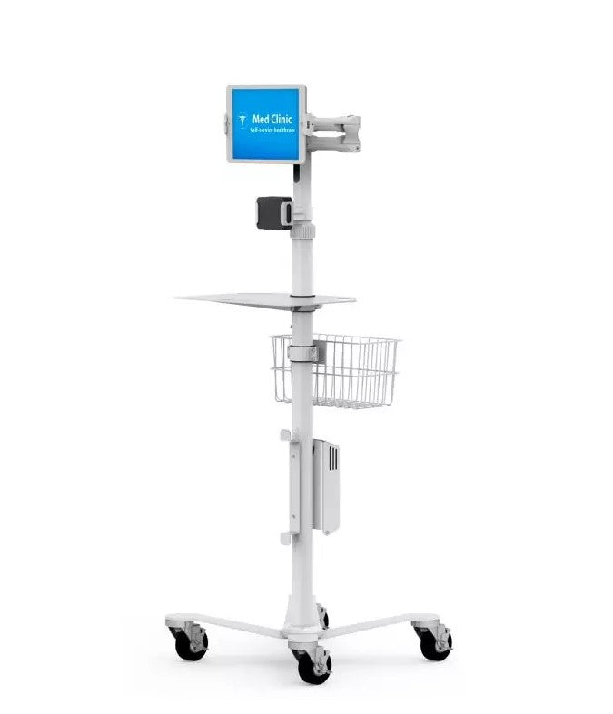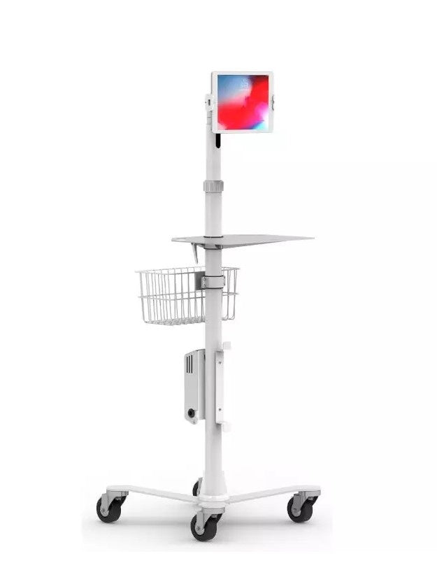 Dit is een veelzijdig rollend werkstation, perfect voor het integreren en implementeren van tablets/schermen in een verscheidenheid aan mobiel verbonden omgevingen. - Ziekenhuis en kliniek medische kar / werkstation - Magazijn- of winkelwerkstation, houd eenvoudig de voorraad in de gaten en bied klantenservice in de winkel - Bezoekersregistraties en inchecken voor beurzen en evenementen - Vrijstaande mobiele kassaterminal voor drukke winkelevenementen en vakanties - Tijdelijke kantoorwerkplek voor drukke kantoren of alternatief voor het traditionele bureau - Mobiel podium voor lezingen, religieuze diensten, muziekuitvoeringen en conferenties