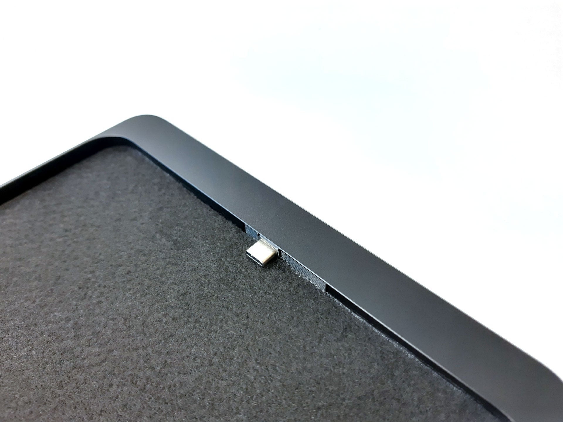De nieuwe hoogwaardige en slanke slide-in tablet-wandhouder van Displine combineert elegantie, hoge kwaliteit en flexibiliteit. Door de asymmetrische open zijde is de tablet gemakkelijk te verwijderen en volume knoppen nog te bedienen. De tablet wordt constant opgeladen in de muurbeugel. De muurbeugel is gemaakt van nauwkeurig bewerkt aluminium met een glad gepoedercoat oppervlak.