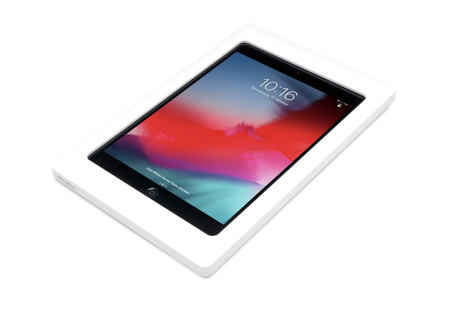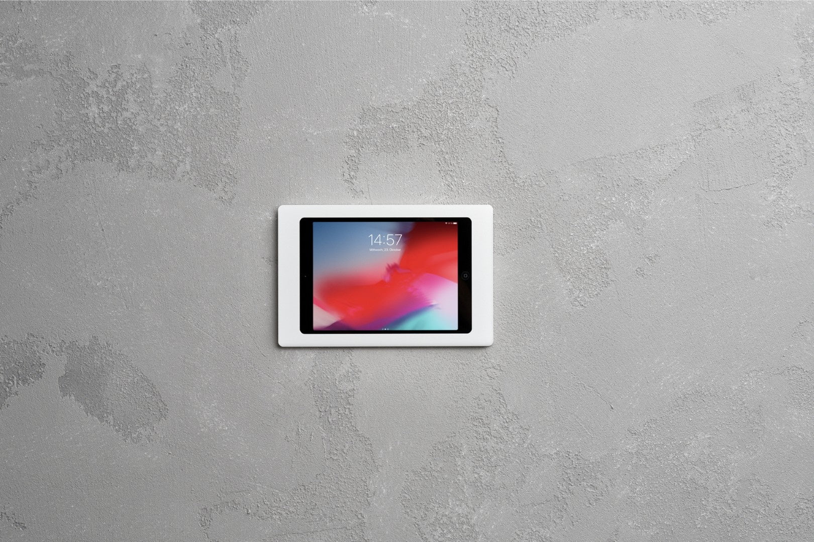 Strakke aluminium wandhouder geschikt voor iPad 10.2/10.5 tablets. Het frame wordt direct op de muur bevestigd. Het frontpaneel is magnetisch en dus snel afneembaar. Er is intern ruimte voor aansluiting van iPad Lightning kabel.