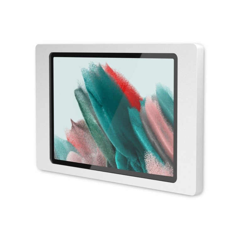 Strakke aluminium wandhouder geschikt voor Samsung Galaxy TAB A8 10.5 (2021/ SM-X200/ X205) tablets. Het frame wordt direct op de muur bevestigd. Het frontpaneel is magnetisch en dus snel afneembaar. Er is intern ruimte voor aansluiting van laadkabel.