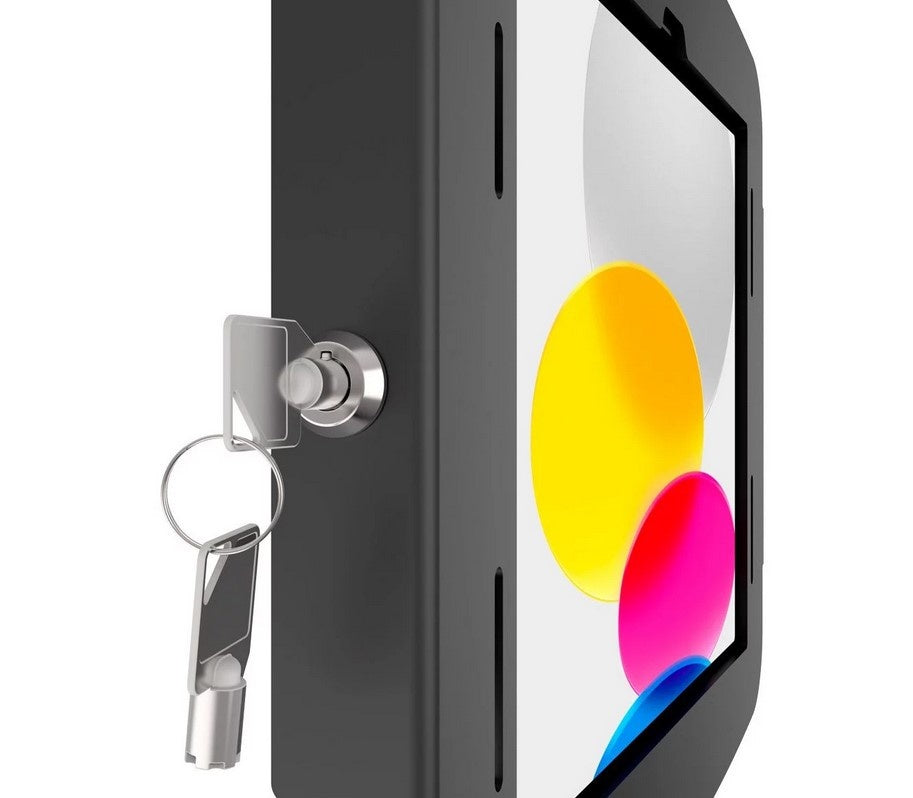 High Grade aluminium sleutelslot afsluitbare iPad 10.2 houder geschikt voor directe montage op een wand of VESA 100 montage aan een arm of standaard. Inwendig ruimte voor bekabeling.