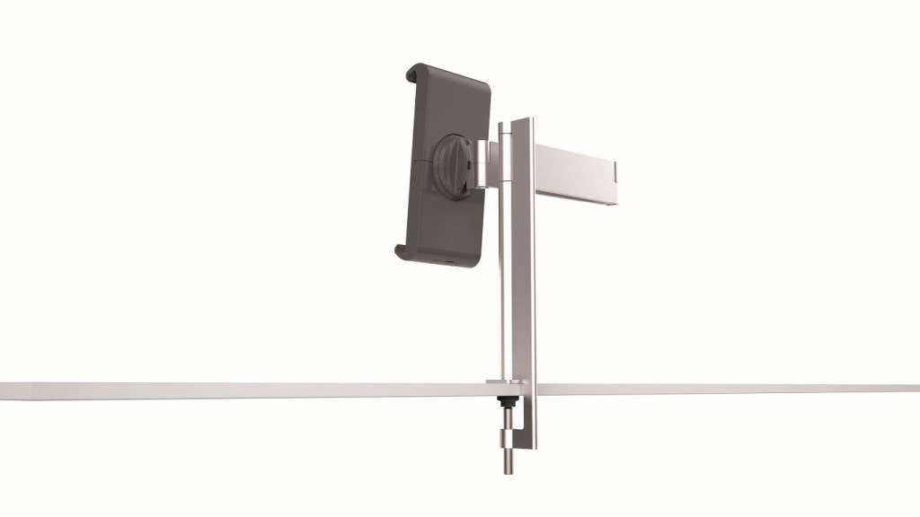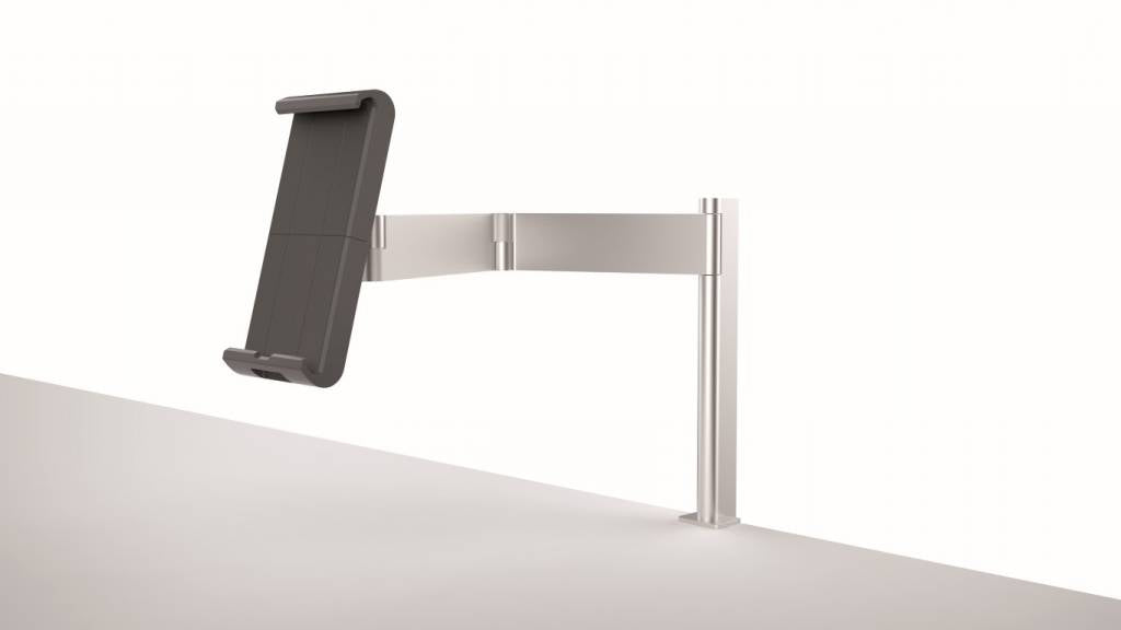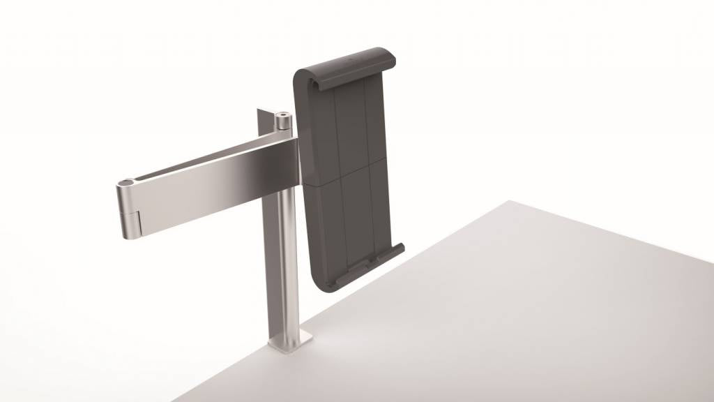 Tablethouder met tafelklem en flexibele zwenkarm.Voor een professioneel gebruik van tablets.