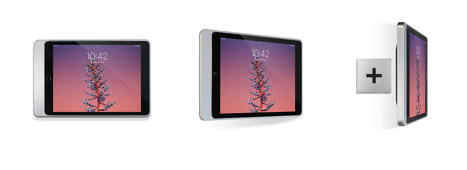 Eigenschappen Wandmontage mogelijkheid met continu op laden en Wifi of bedraad internet (zie gerelateerde artikelen) Omkadert de iPad met een elegante en fijne rand Met precisie vervaardigd uit een massief stuk aluminium met soft touch rugzijde Geïntegreerde magneten om op base te bevestigen Belangrijkste iPad-functies en sensoren blijven bereikbaar Geïntegreerde connector voor het opladen van de iPad Kleur keuze aluminium, zwart of satin wit Afmetingen: 214 x 139 x 10 mm / 8.42" x 5.46" x 0.39"