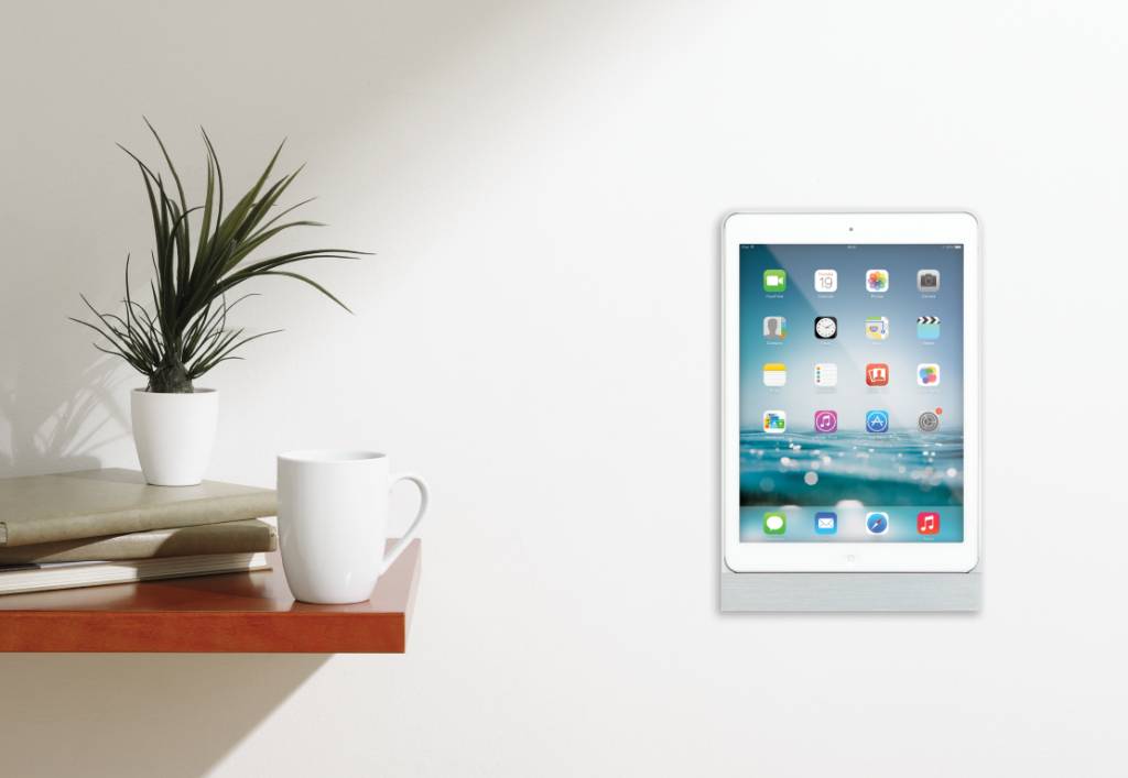 Eve is een elegante wandhouder voor iPad. Hij is uit hoogwaardig aluminium gemaakt en is beschikbaar in verschillende afwerkingen zoals geborsteld aluminium, zwart of satijn wit. Het strakke design vult het design van de meest populaire tablet op de markt perfect aan.