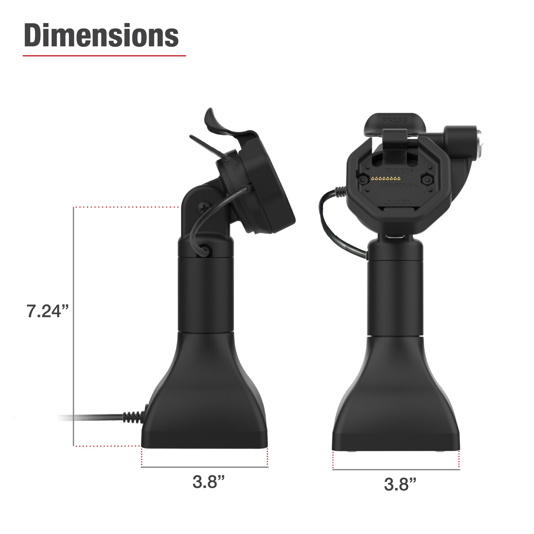 Productafmetingen Hoogte van Basis tot Kantelbout: 18,39 cm (7.24")Breedte basis: 9,65 cm (3.8")Basis Diepte: 9,65 cm (3.8")