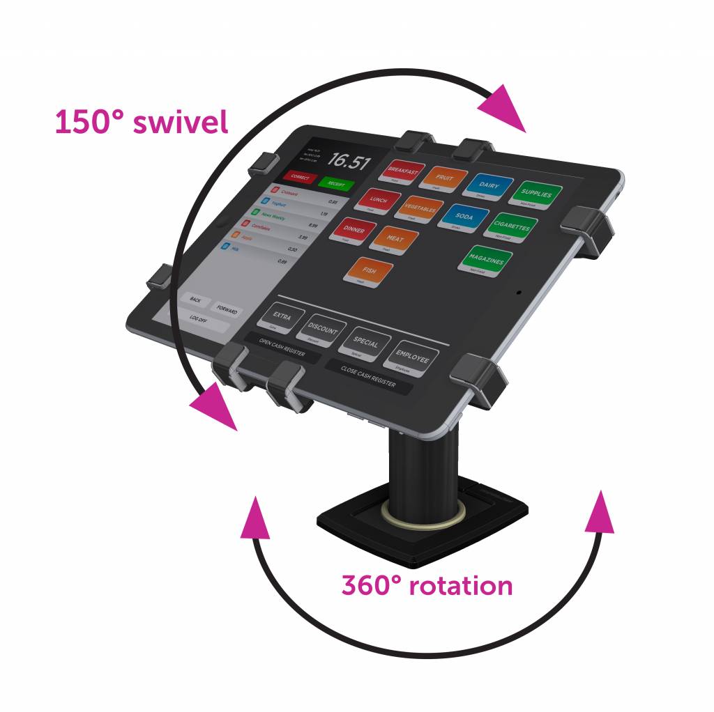 Swivel versie kan snel van medewerker naar klant gedraaid worden. Daarom uitstekend geschikt voor POS Kassa toepassingen.