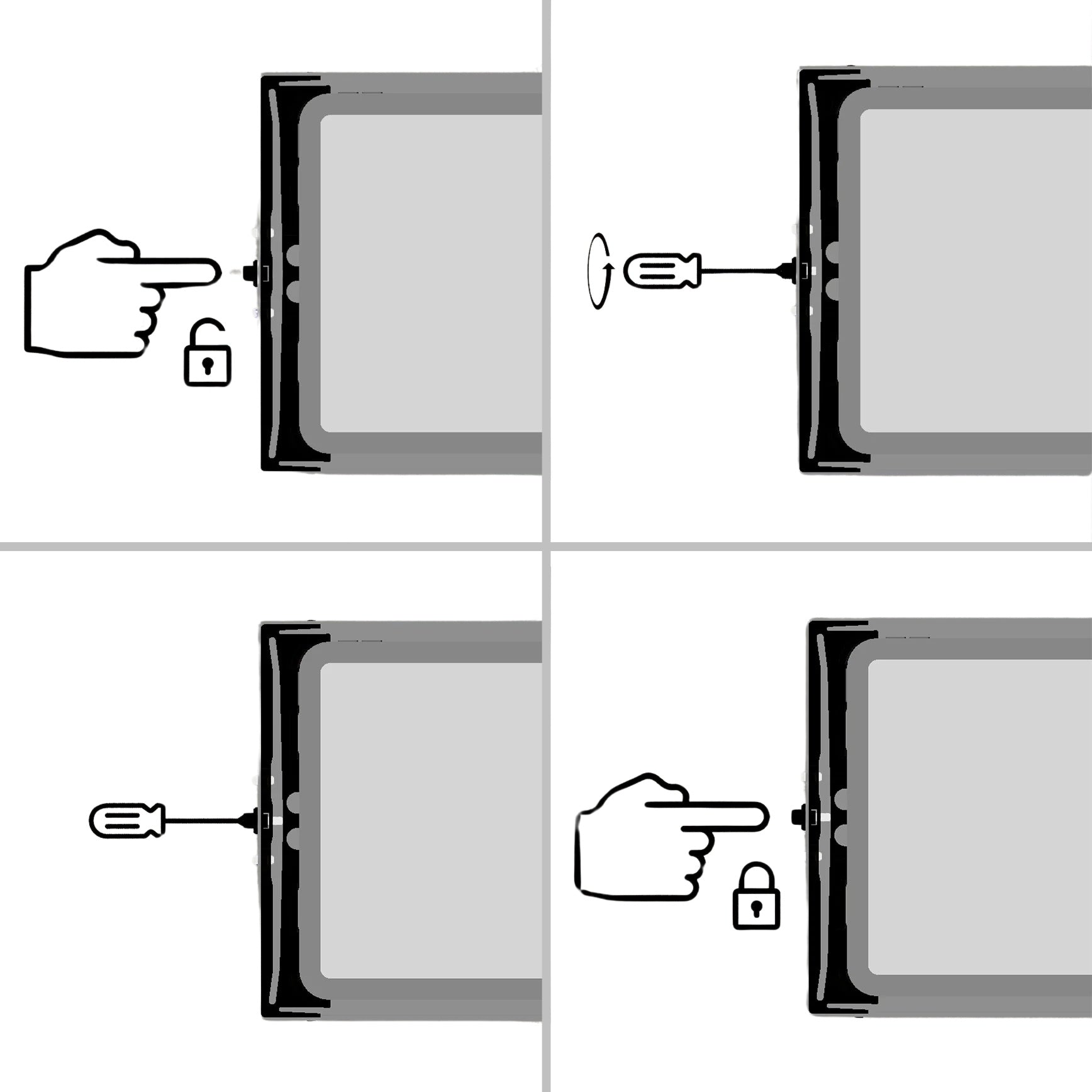 Voor diefstalgevoelige locaties zijn de drukknopjes op slot te zetten door handige inbusboutjes aan te draaien.