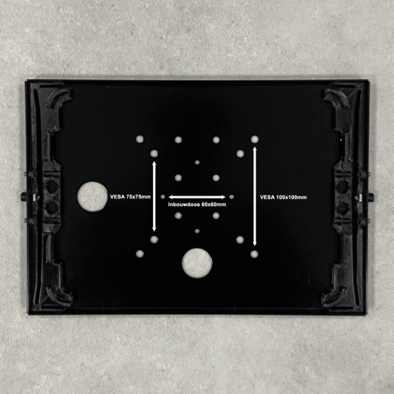 Voorzien van meerdere gaten patronen 33*33 mm (Tabboy montage), 75/100 mm (VESA) en 60 mm inbouwdoos electra