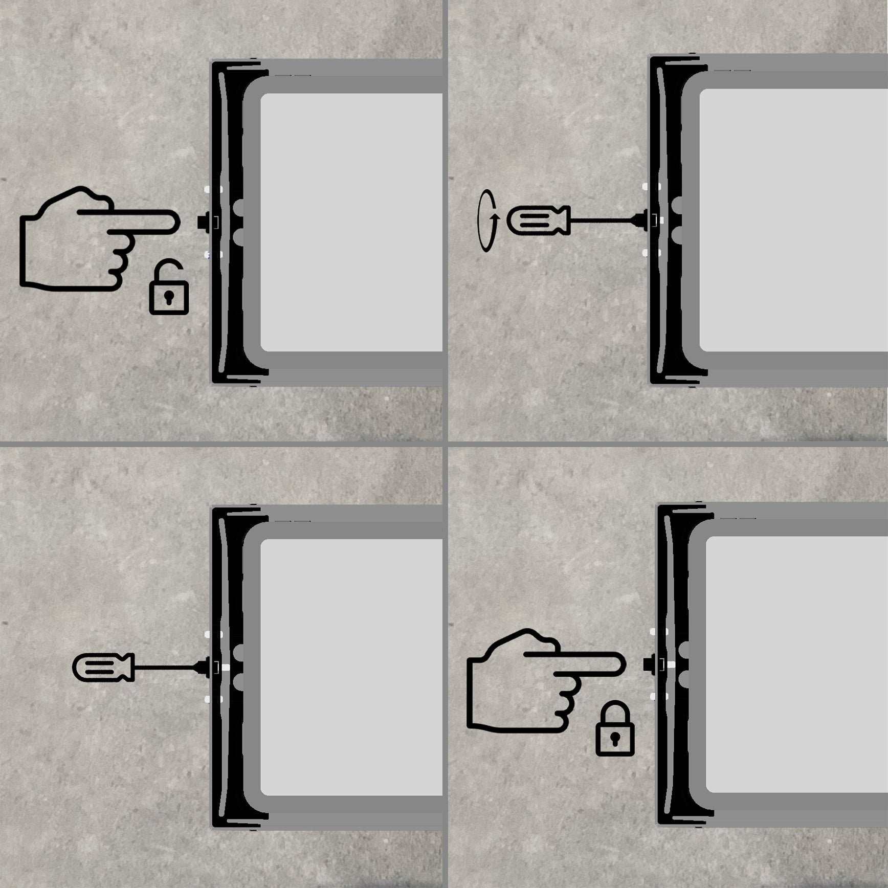 Voor diefstalgevoelige locaties zijn de drukknopjes op slot te zetten door handige inbusboutjes aan te draaien.