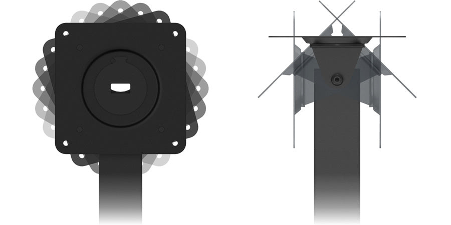 Deze VESA tafel- wandstandaard is uitgerust met kantelbaar montageplaat voor snel aanpassen van de kijkhoek, en draaibaar van portrait naar landscape.