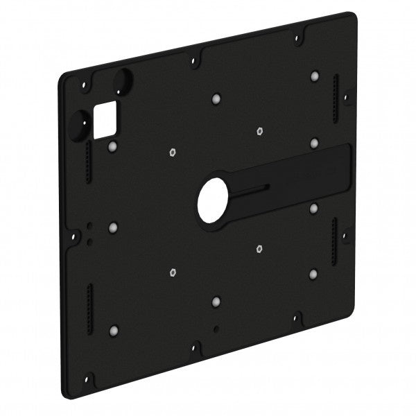 De Vidamount kunststof cassette is op maat gemaakt voor deze iPad 12.9 en is slechts 17 mm dik. Wordt aan de achterzijde afgesloten met acht boutjes en is voorzien van inwendige VESA 100 M4 aansluiting.Er is ruimte om de USB-lightning kabel door de voeren naar de achterzijde.