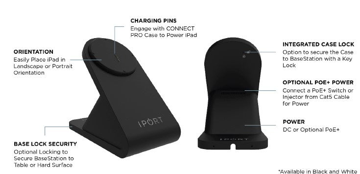 De ConnectPRO Basestation geeft de iPad een veilige en vaste plek in huis en/of bedrijf. Het is mogelijk om de iPad horizontaal of verticaal te gebruiken, de Sleeve kan gemakkelijk 360 graden draaien op de Basestation.