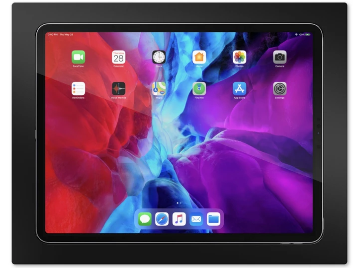 SimpliDock™ iPad Pro 12.9 (gen 3, 4, 5) inbouw wandhouder inbouw domotica. SimpliDock™ was voorheen iWalldock