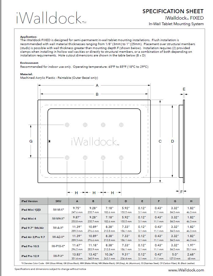 Vaste of verwijderbare iPad® SimpliDock ™ is de enige verzonken iPad-wandsteun waarmee u in minder dan 2 seconden kunt docken en uitwerpen! Verschillende sterke magneten houden de iPad stevig op zijn plaats, maar door stevig te drukken kan de iPad worden uitgeworpen wanneer dat nodig is. Voor projecten waar de iPad® op zijn plaats moet blijven, gebruikt u gewoon de meegeleverde "Fixed Adapter" om de iPad® tijdens de installatie in het dock te vergrendelen.