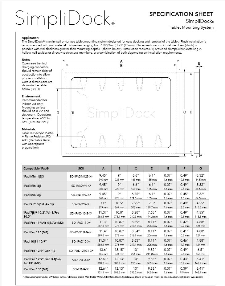 Met het SimpliDock ™ -tabletmontagesysteem kunt u uw iPad® snel en eenvoudig in het dock plaatsen, opladen en gemakkelijk toegang krijgen. Ons gepatenteerde, verzonken iPad-dock benadrukt de esthetiek van Apple en vormt een perfecte aanvulling op uw interieurontwerp.