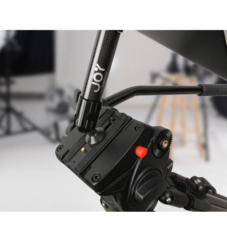 Het bevestigingssysteem Joy Factory Mount is eenvoudig aan een hard oppervlak te bevestigen aan elk fotostatief met camera schroefdraad.