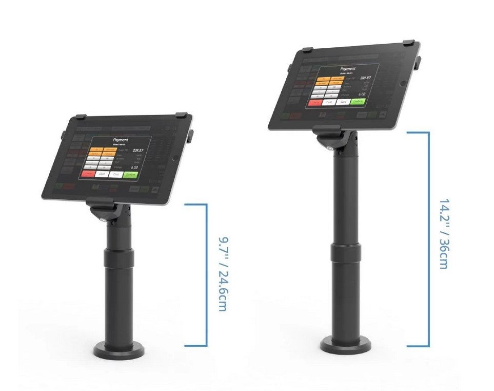 Deze iPad Kiosk is een robuuste en veilige oplossing voor het mobiele kassasysteem van uw bedrijf. De intuïtief ontworpen standaard heeft een roterende en zwenkbare kop en een in hoogte verstelbare paal, waardoor uw iPad-kassasysteem eenvoudig te gebruiken en toegankelijk is. De Legacy Revel Systems ™ paalstandaard heeft een ontwerp met doorlopende draden voor kabelbeheer om uw aanrecht schoon te houden van rommel.