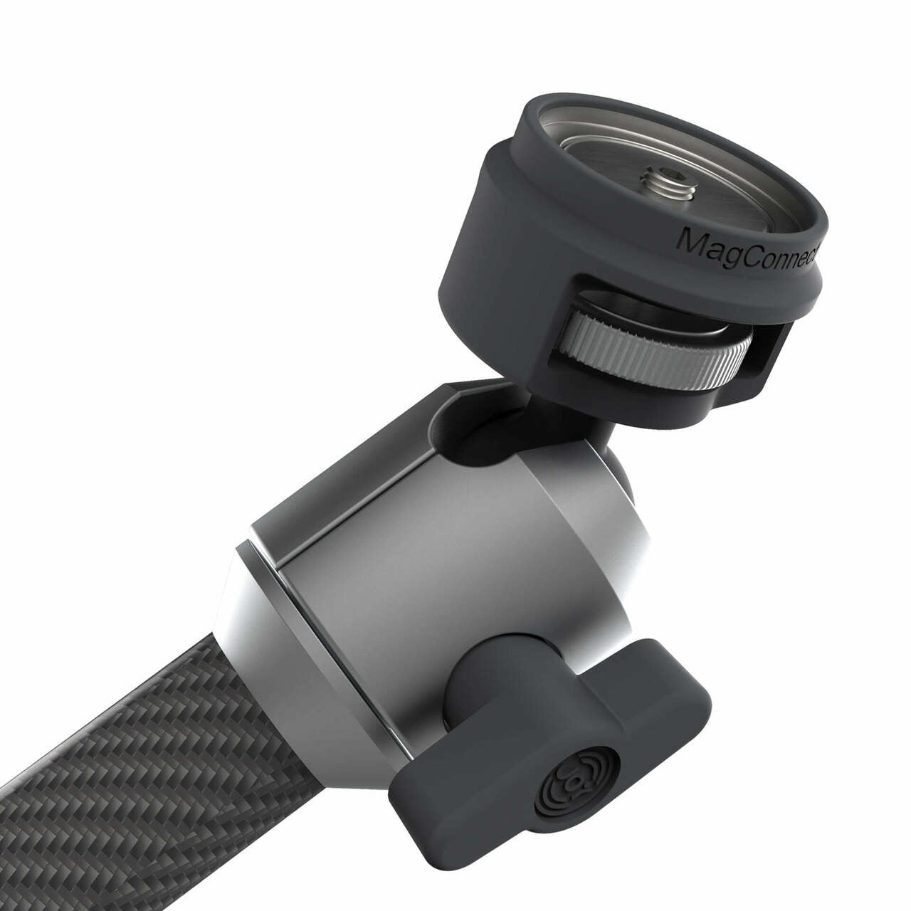Elke MagConnect-mount is voorzien van onze quick connect-technologie, waarmee magnetisch een compatibele case aan de mount kan worden bevestigd. De mount is voorzien van een koolstofvezelarm waardoor hij zowel licht als duurzaam is. Twee bolvormige kogelgewrichten zorgen voor een bijna oneindige positionering van de arm, waardoor de gebruiker de meest optimale kijkhoek kan bereiken.