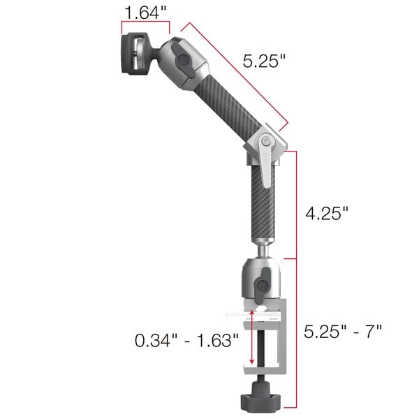 Joints: 1" spherical joint at base x 1, locking 360° joint between arms x 1, 1" spherical joint at tablet connection x1