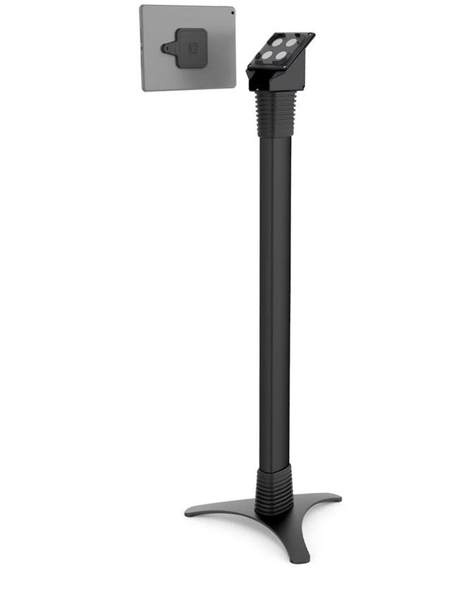 De Magnetix-vloerstandaardset bestaat uit een 100 mm VESA-magneetplaat waarmee de tablet gemakkelijk kan worden opgetild en weer op zijn plaats kan worden geplaatst, en een sleuf voor kabelslot. Het meegeleverde kabelslot zorgt voor de nodige veiligheid en de verstelbare vloerstandaard fungeert als een elegante en efficiënte manier om de tablet in elke gewenste hoogte of hoek weer te geven. De kit bevat ook een zelfklevende plaat die op elke tablet of iPad kan worden bevestigd en aan de magneten kan worden bevestigd.