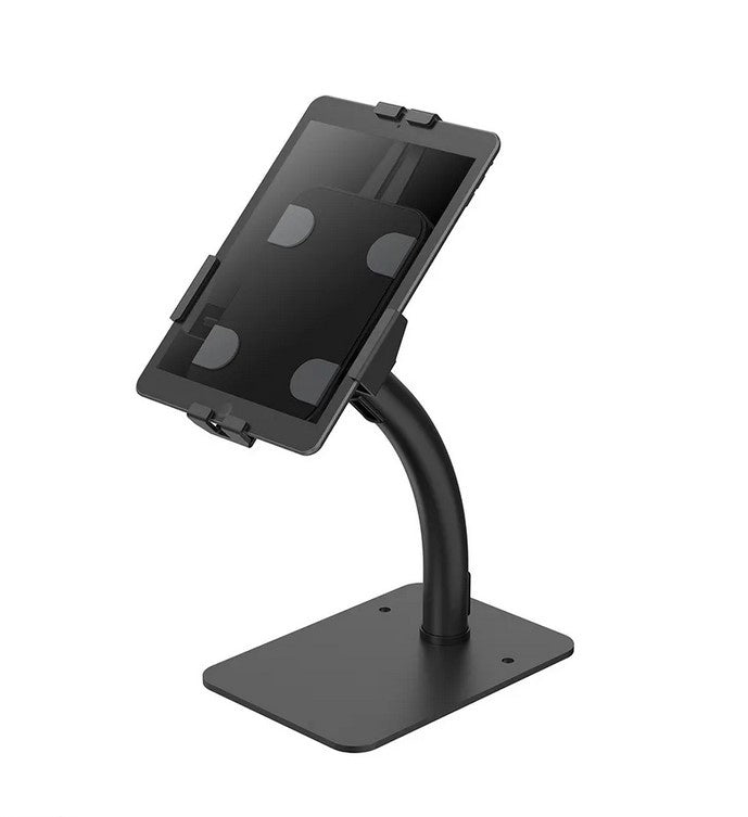 De tablethouder is voorzien van een anti-diefstalslot en een schroefbare basis voor extra veiligheid. Anti-slipkussentjes beschermen de tablet tegen eventuele krassen, terwijl de in hoogte en breedte verstelbare klemmen zorgen voor een veilige en solide plaatsing van het apparaat. De bovenzijde is voorzien van een uitsparing voor de camera van de tablet. Kabels kunnen netjes worden weggewerkt via het interne kabelmanagementsysteem. De DS15-625BL1 is geschikt voor tablets met een dikte van 0-8,5 mm.