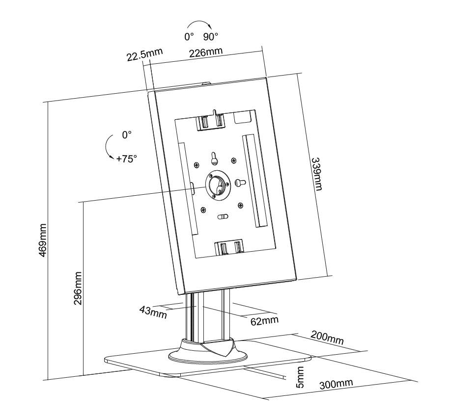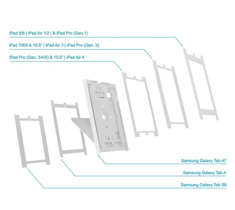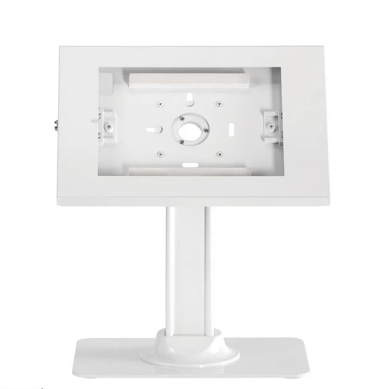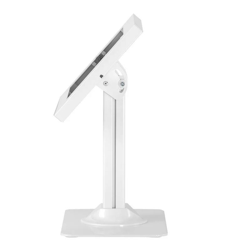 De tablethouder is voorzien van een anti-diefstalslot en een schroefbare basis voor extra veiligheid. Anti- slipkussentjes in de casing beschermen de tablet tegen eventuele krassen en de stalen constructie zorgt voor een veilige en solide plaatsing. Het kabelmanagementsysteem maakt het mogelijk om kabels door de casing te geleiden. Vrijstaand of schroefvast te monteren.