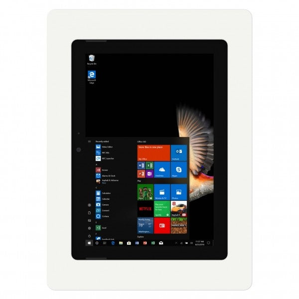 Een kunststof low-profile wandhouder met verwijderbare frontplaat geschikt voor Microsoft Surface GO. Zeer geschikt voor domotica oplossingen in huis en bedrijf (geen anti-diefstal voorziening).