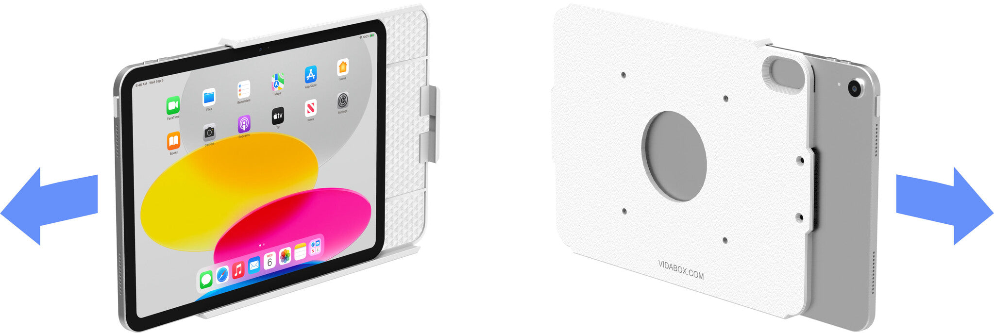 Wilt u uw tablet snel en gemakkelijk in- en uitschuiven? Installeer eenvoudigweg de open VESA-behuizing zonder de zijrandhouder, zodat u deze op elk moment snel kunt verwijderen!