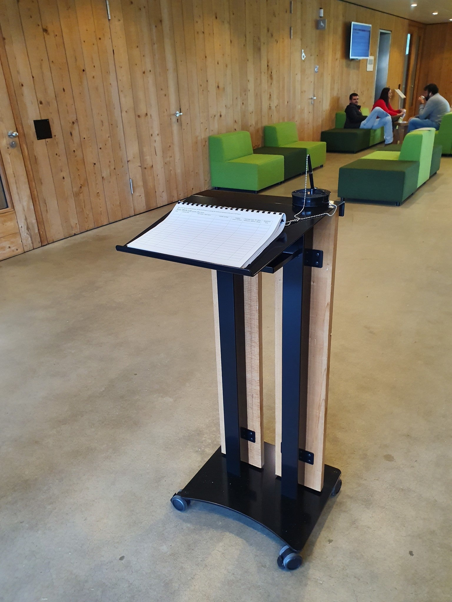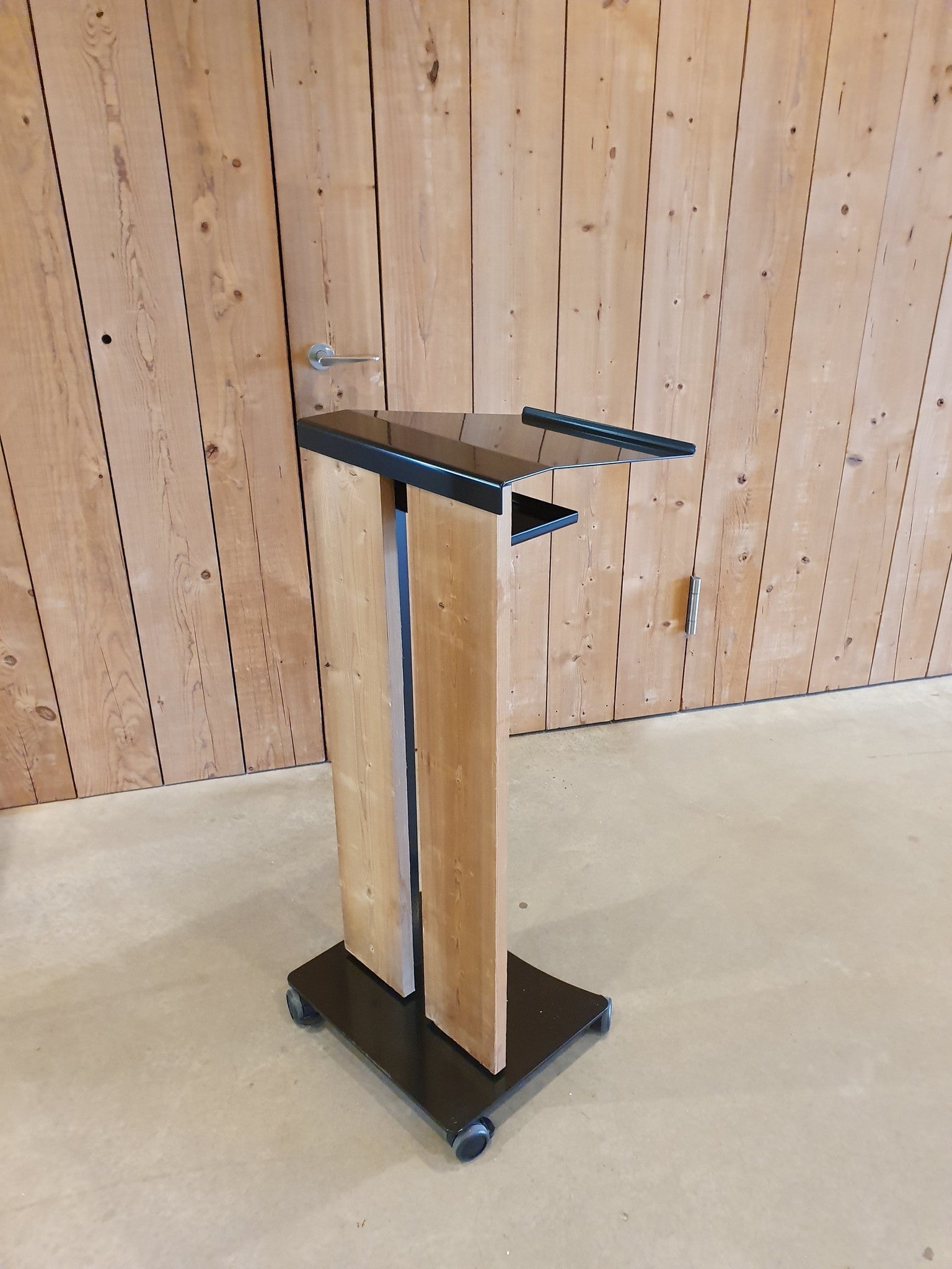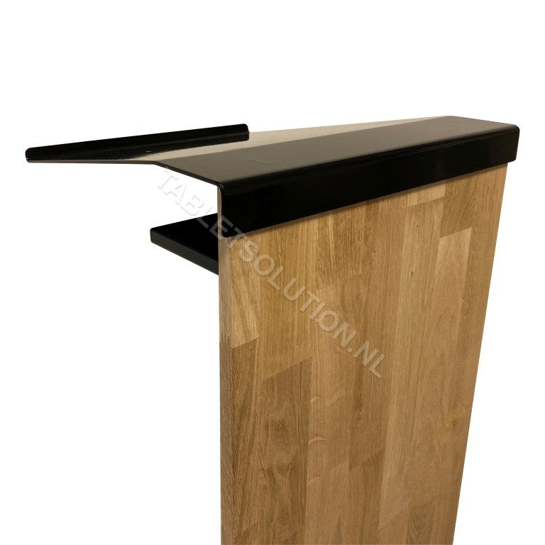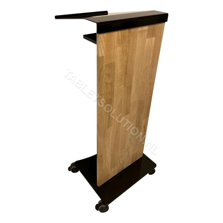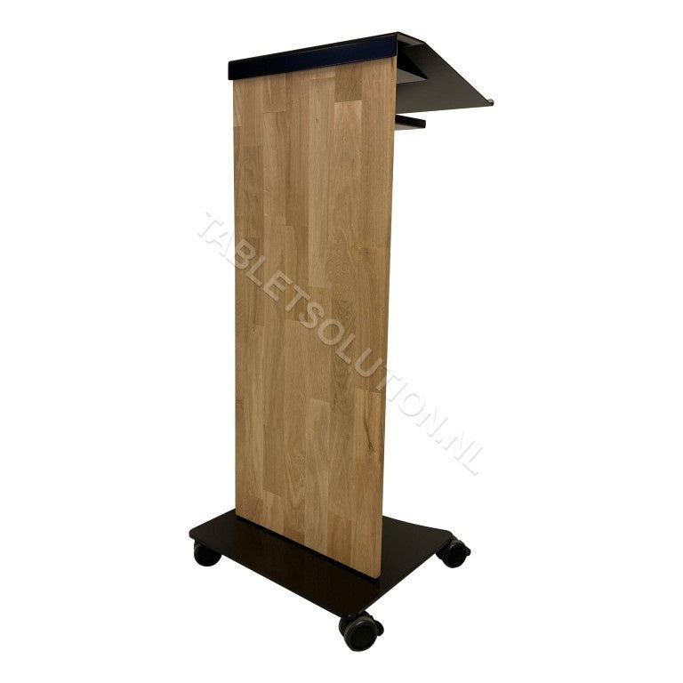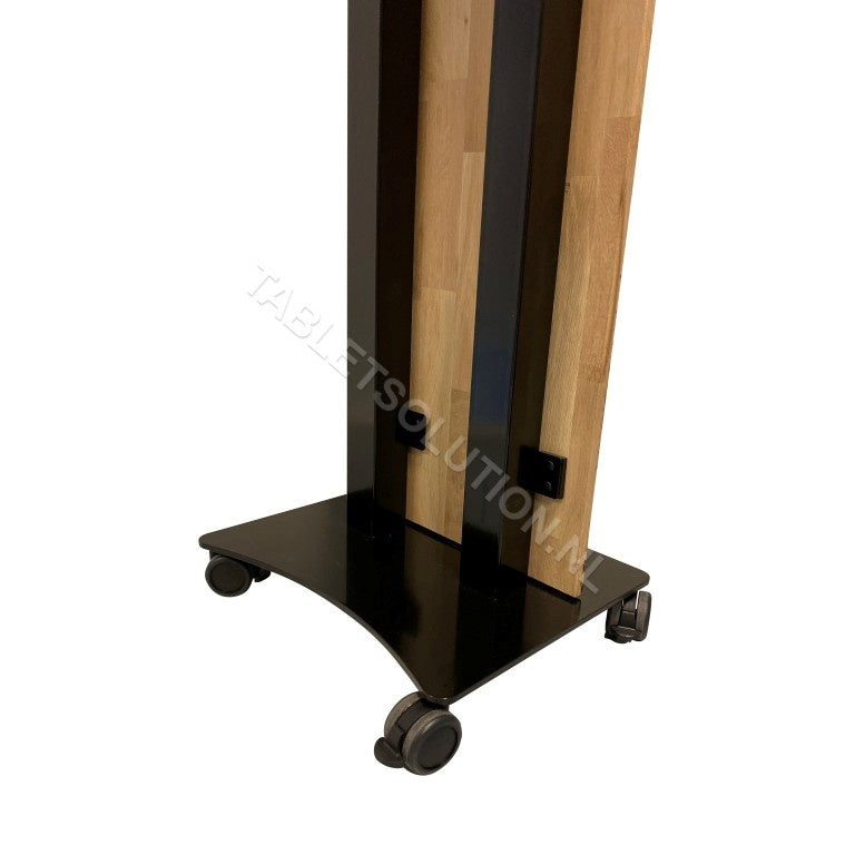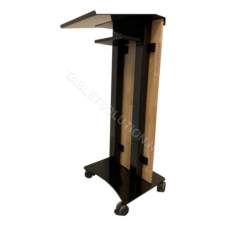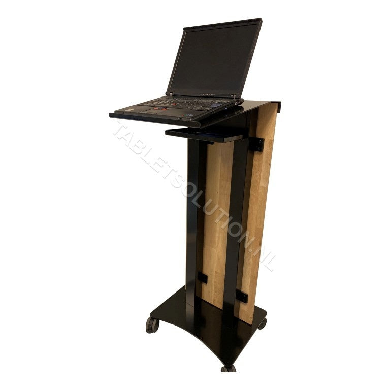 Stijlvolle en stevige presentatiezuil voor laptops en tablets voorzien van 4 grote geremde wielen. Het stalenframe is gemaakt van stevig staal en volledig gelast en zwart gepoedercoat. Ook bruikbaar als spreekgestoelte voor bedrijf en congres.