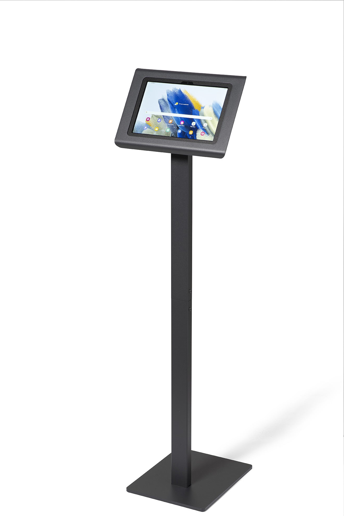 De nieuwe Samsung tablet vloerstandaard van Tabdoq kenmerkt zich door zijn verfijnde en slanke uiterlijk. Daardoor wordt de aandacht gericht op de Samsung tablet en de content die daar op wordt gepresenteerd. De Samsung tablet behuizing kan zowel in portrait als landscape gemonteerd worden.