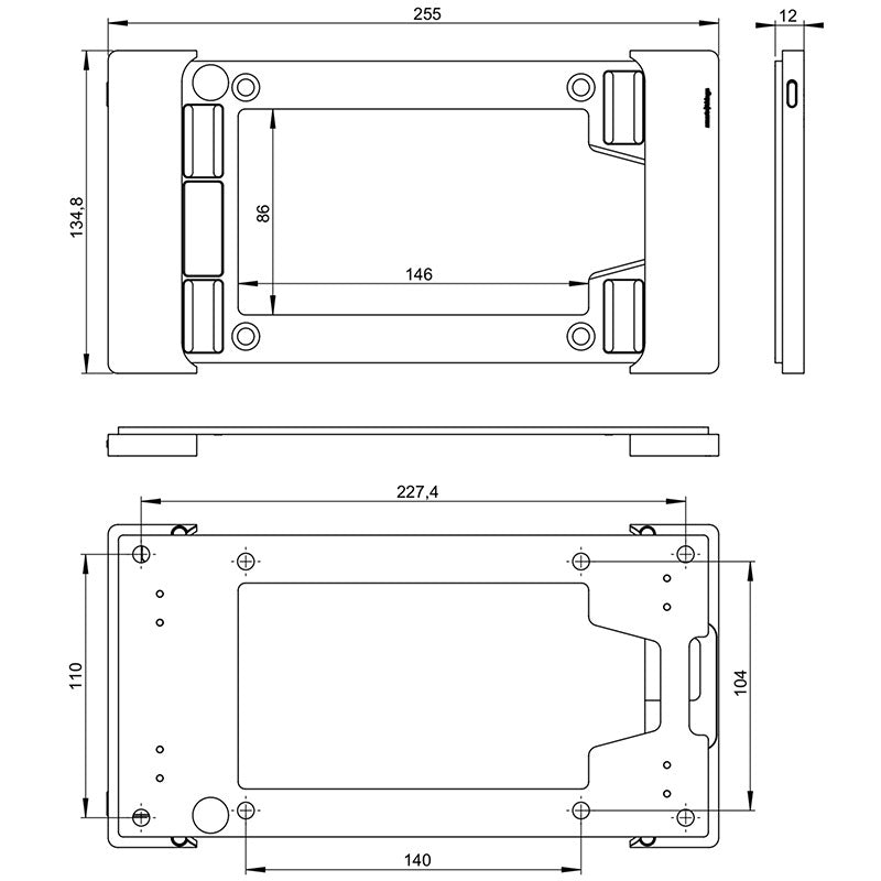 Afsluitbare wandhouder voor permanente iPad-installaties. Zeer dun, slechts 12 mm. Geen extra frame aan de lange zijden, wat een esthetisch pluspunt is, waardoor alle knoppen en andere elementen (bijv. microfoon) toegankelijk blijven.