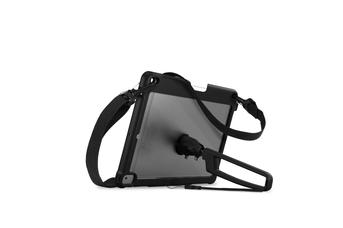 Slimmere functies »» Innovatieve, ergonomische 360-graden draaibare handgreep kan op meerdere manieren worden vastgehouden voor flexibiliteit en comfort »» Handvat draait met behulp van een kogel- en kommechanisme om de positioneringsopties te maximaliseren »» Efficiënt ontworpen om de belasting van uw hand en pols te verminderen »» Afneembare, verstelbare schouderband plus polslus voor extra veiligheid »» Doorzichtige, harde schaal beschermt tegen stoten en krassen, en laat de schoonheid van iPad doorschijnen »» Opslag voor Apple Pencil (1e generatie) of Logitech Crayon »» Onbelemmerde toegang tot alle poorten en knoppen