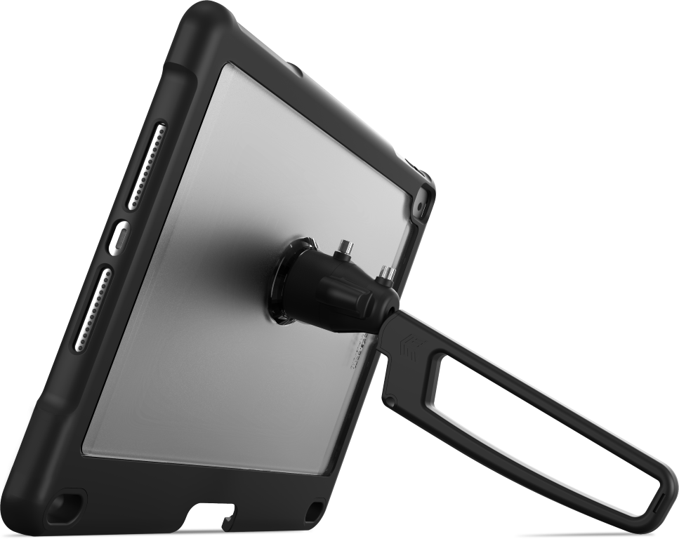 De toevoeging van een verwijderbare 360-graden draaibare handgreep heeft een dubbele functie: als een ingenieus, gemakkelijk vast te pakken handvat voor uw apparaat en een handige standaard om het te bekijken. Ons gepatenteerde ontwerp is superieur aan handriemen omdat het meer bewegingsvrijheid en keuze van positionering voor uw hand en pols mogelijk maakt, en heeft de voorkeur boven typische O-vormige handgreepringen vanwege het gebrek aan comfort van die structuur tijdens perioden van: uitgebreid gebruik. Dux Grip heeft ook een transparante achterkant, ideaal voor asset tagging of gebruikersaanpassing, terwijl de geïntegreerde opslag plaats biedt aan de Apple Pencil (1e generatie) of Logitech Crayon.