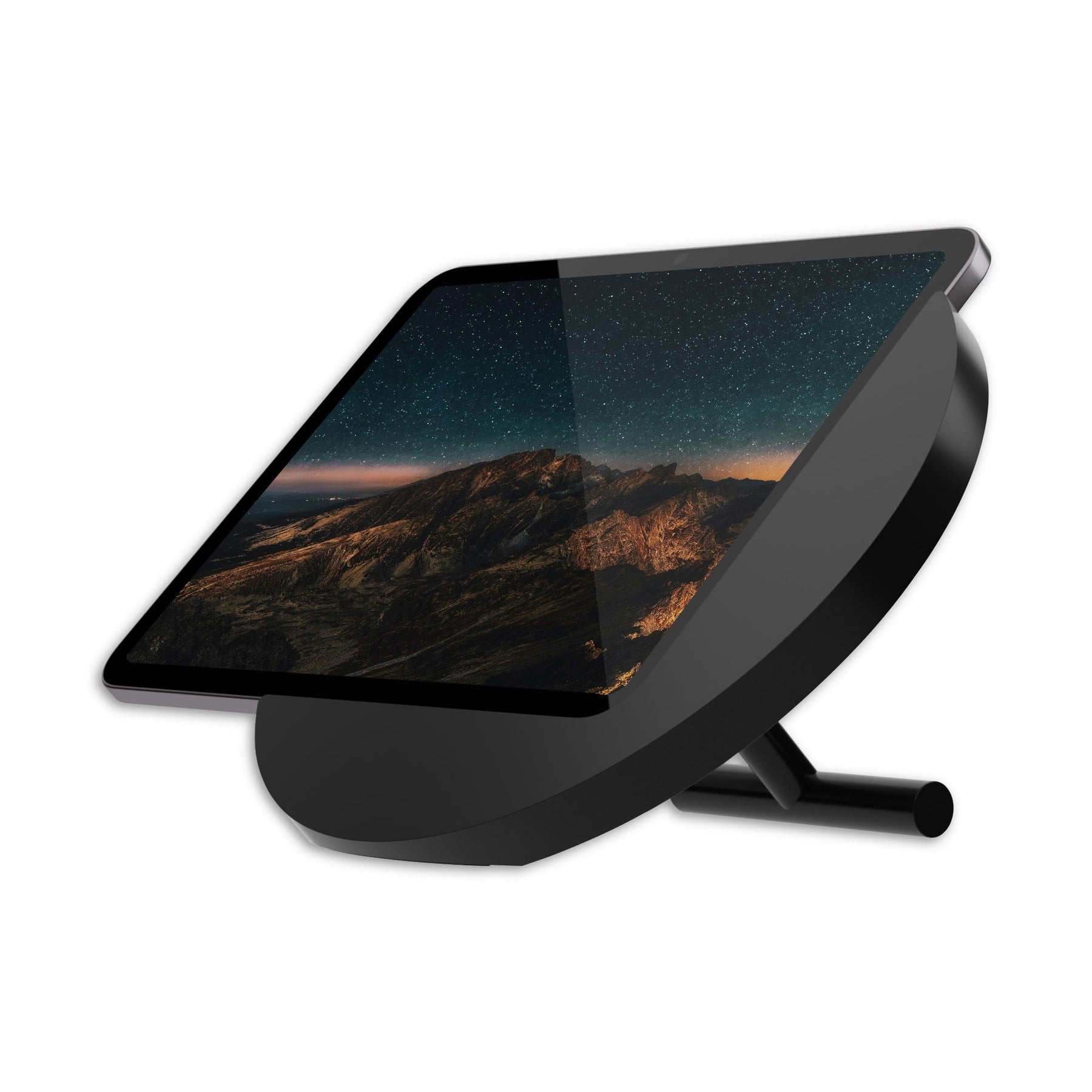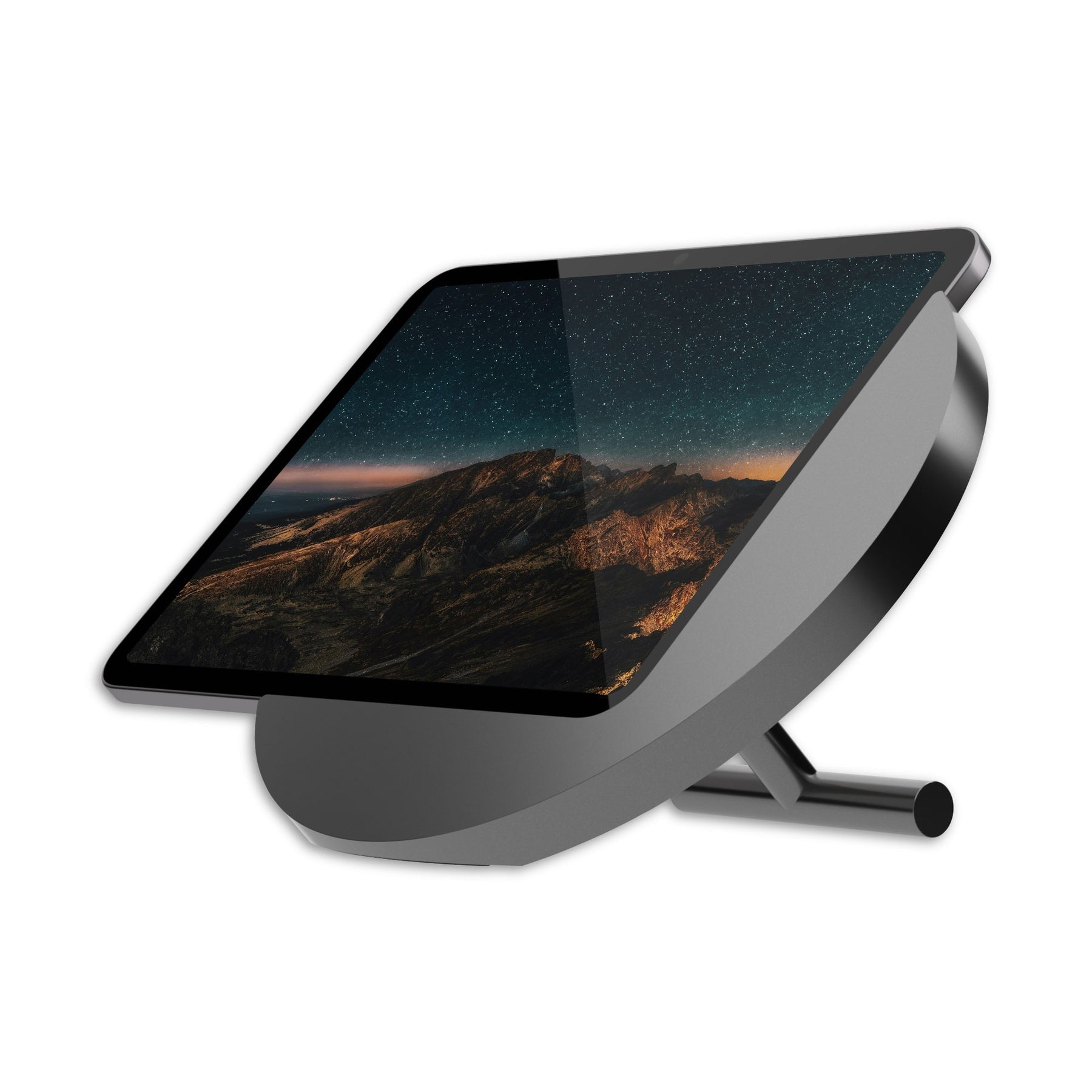 Zonsondergang lijkt op een ondergaande zon die zachtjes de iPad omhult. De eenzijdig open tafelstandaard is gemaakt van nauwkeurig gefreesd aluminium, behandeld met oppervlakteafwerking en geanodiseerd.