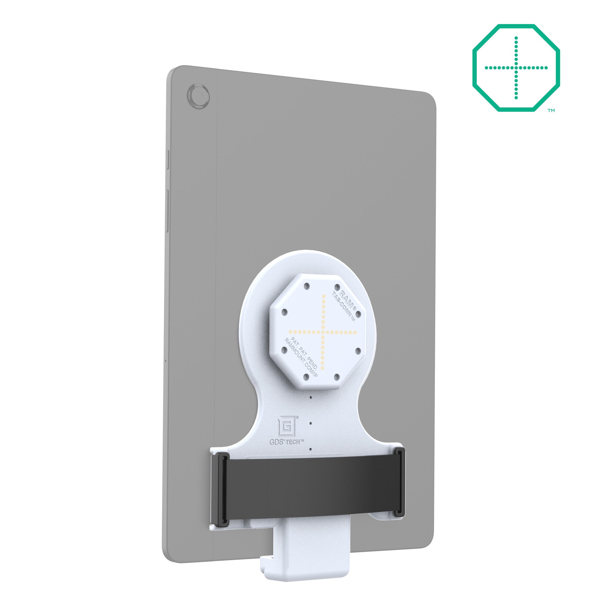 Harde plastic, zelfklevende GDS® Uni-Conn™ adapter met achterste pogo-pads voor tablets zonder hoes. Lees meer
