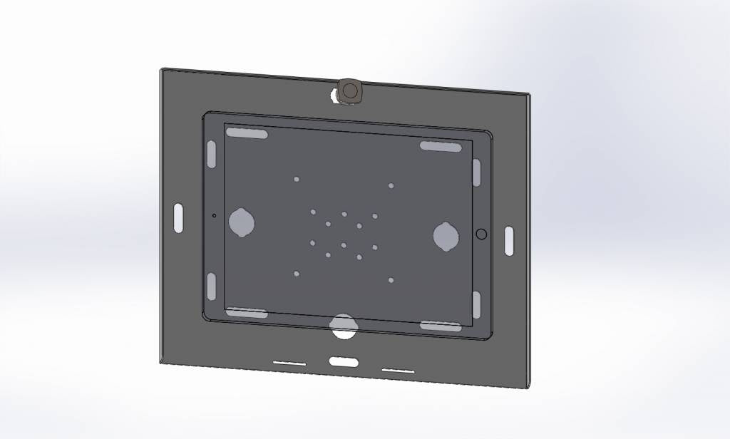 De deksel is afsluitbaar met het ingebouwde cilinderslot. De iPad kan zelf naar keuze in portrait of landscape gemonteerd worden (vaste montage).