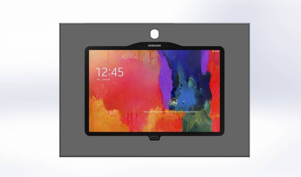 Fraaie design tablet vloerstandaard met geïntegreerde kabelgeleiding en anti-diefstalslot. De camera functie kan gebruikt worden. De tablet ligt volledig ingesloten in de houder en wordt door rubberenstrips beschermt tegen beschadigingen. De Tabboy XL heeft de mogelijkheid om de tablet te gebruiken in staande of liggende positie.
