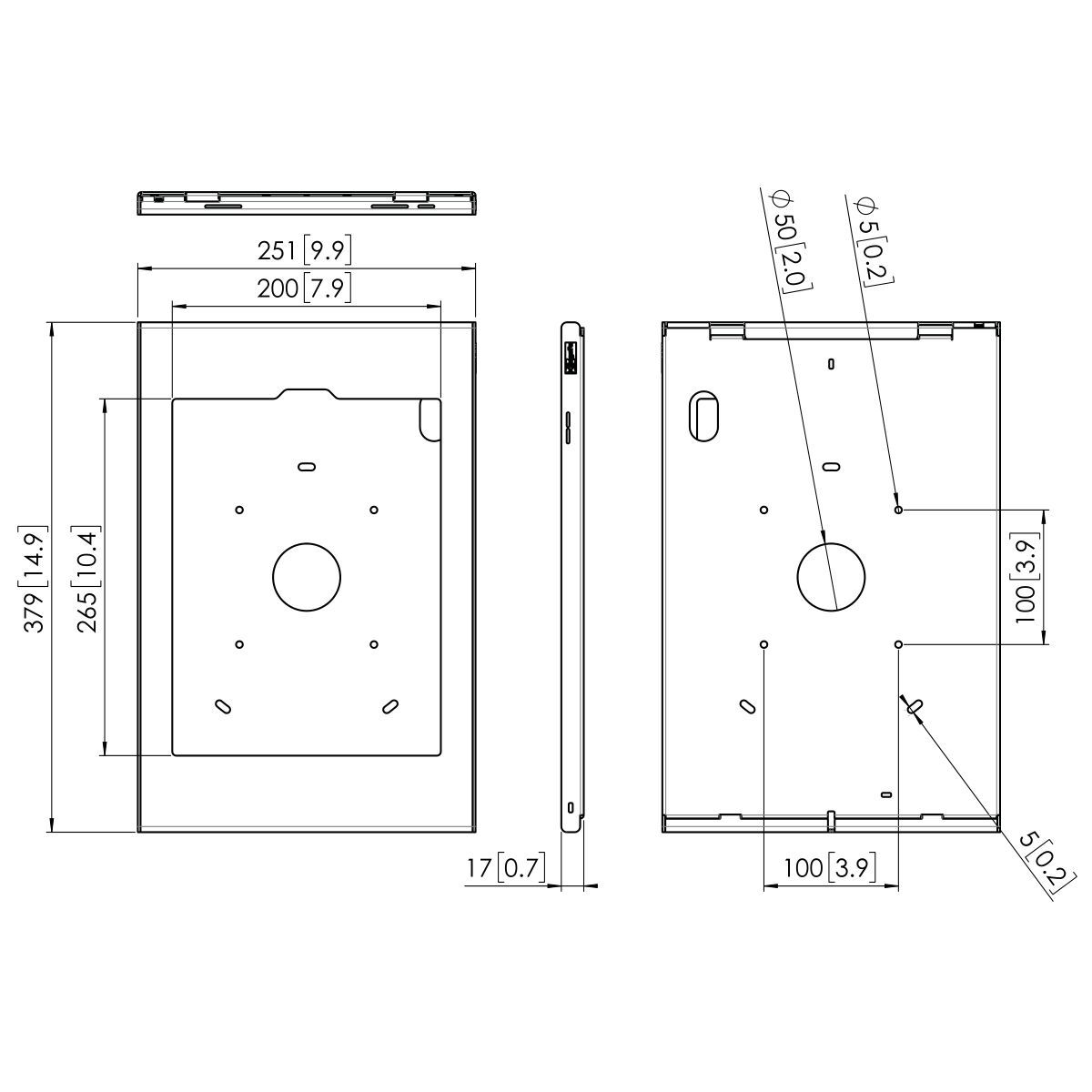 Wij hebben een stijlvolle en slanke behuizing ontworpen van hoogwaardig geborsteld aluminium en staal, waarmee de iPad in openbare omgevingen wordt beschermd. De veilige iPad-behuizing kan direct aan de muur worden gemonteerd of op alle voor VESA 10x10cm geschikte steunen  via de VESA montagegaten.