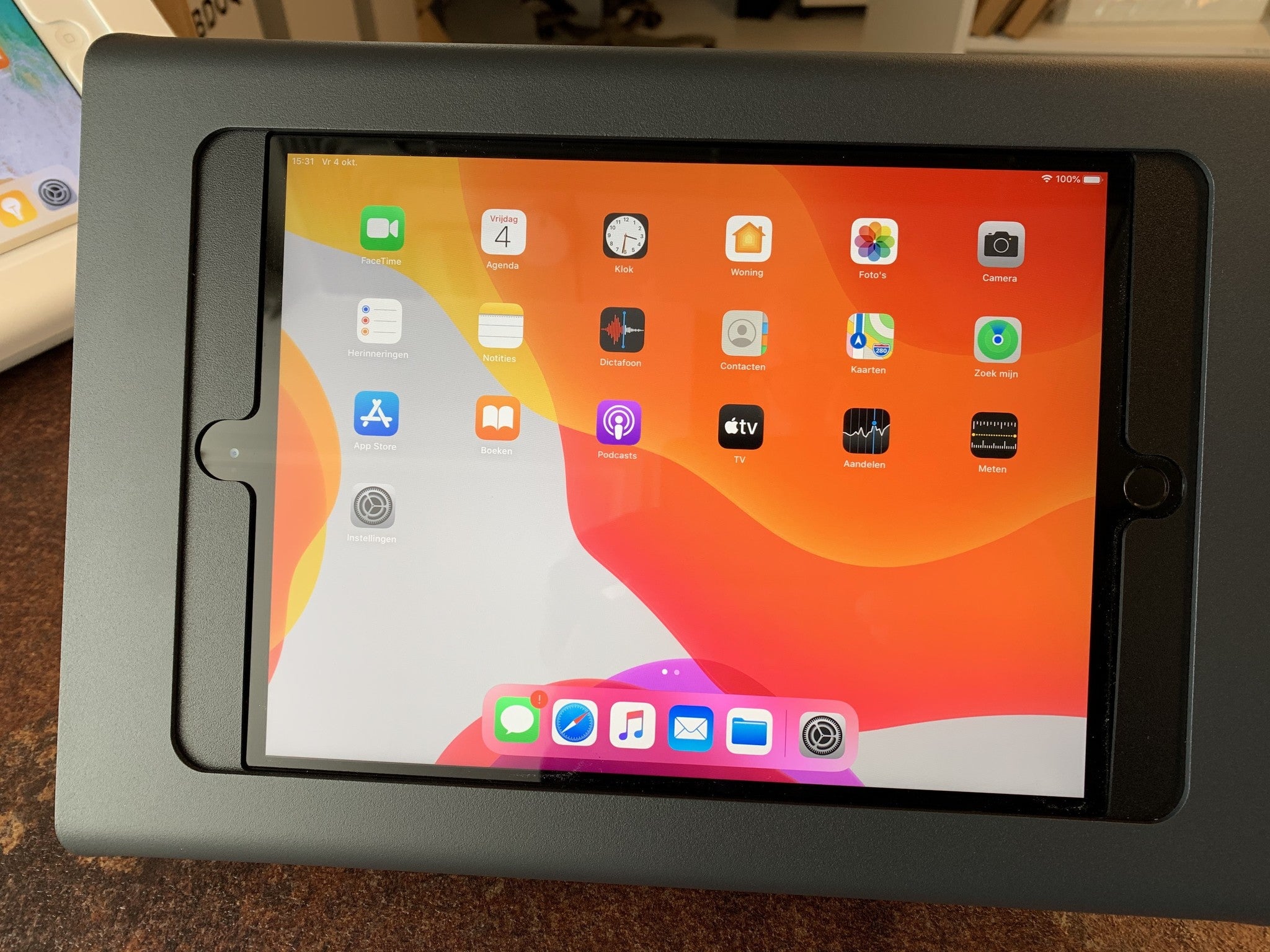 -iPad afgesloten met pintorx schroefjes, alleen te openen met meegeleverde speciale inbussleutel
