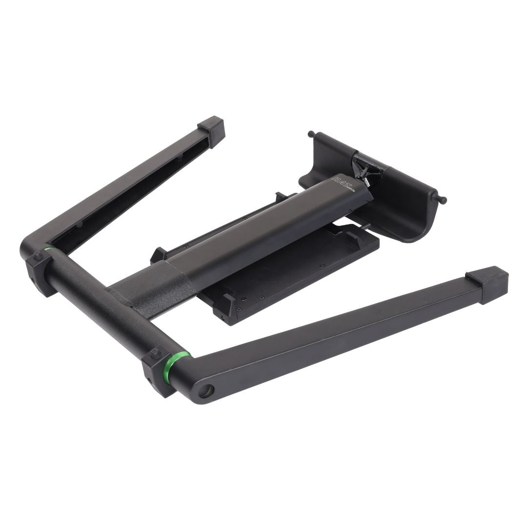 Functies: Inklapbaar tot de grootte van de basis in enkele seconden zonder gereedschap of hendels. Compatibel met alle tabletmodellen binnen het maatbereik van 170-335 mm Schakel binnen enkele seconden tussen gebruik als vloerstandaard naar een tafelstandaard. Zet de tablet vast, verwijder hem en stel hem in enkele seconden af met de zachtsluitende klem. Snel en eenvoudig op te zetten en te verplaatsen. Inclusief accessoireplank en strikhaken. Snelle en eenvoudige aanpassing met alleen wrijving om de standaard op de gewenste hoogte en hoek in te stellen. De hoek van de stuurpen kan worden gewijzigd door de basis om te keren.