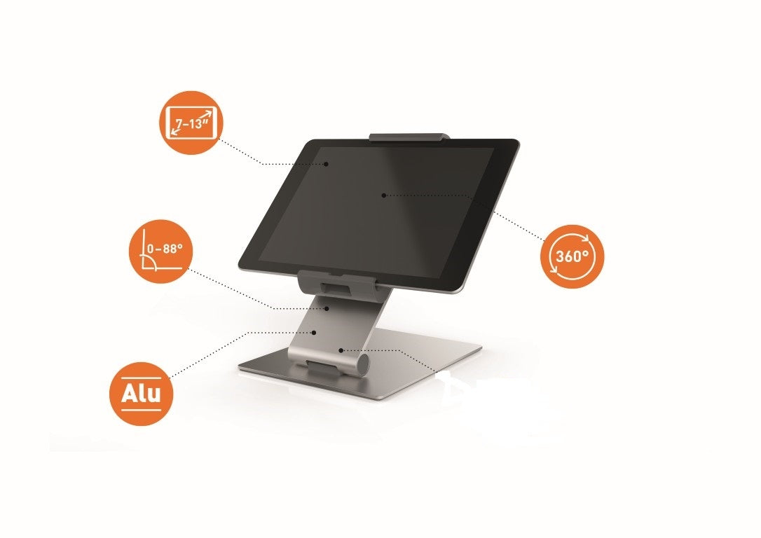 Tablethouder van topkwaliteit. Voor een professioneel gebruik van tablets in kantoren, ontvangstruimtes en showrooms. Dankzij het elegante design en de excellente stabiliteit is deze tablethouder ook ideaal voor het geven van presentaties.