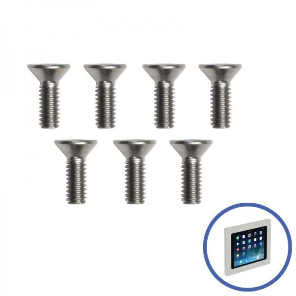 Deze VidaMount VESA-behuizingsbeveiligingsschroeven bevatten een set sabotagebestendige roestvrijstalen schroeven met pin-in-hex-drive, waardoor het onmogelijk is om standaardgereedschap te gebruiken om de iPad te verwijderen.