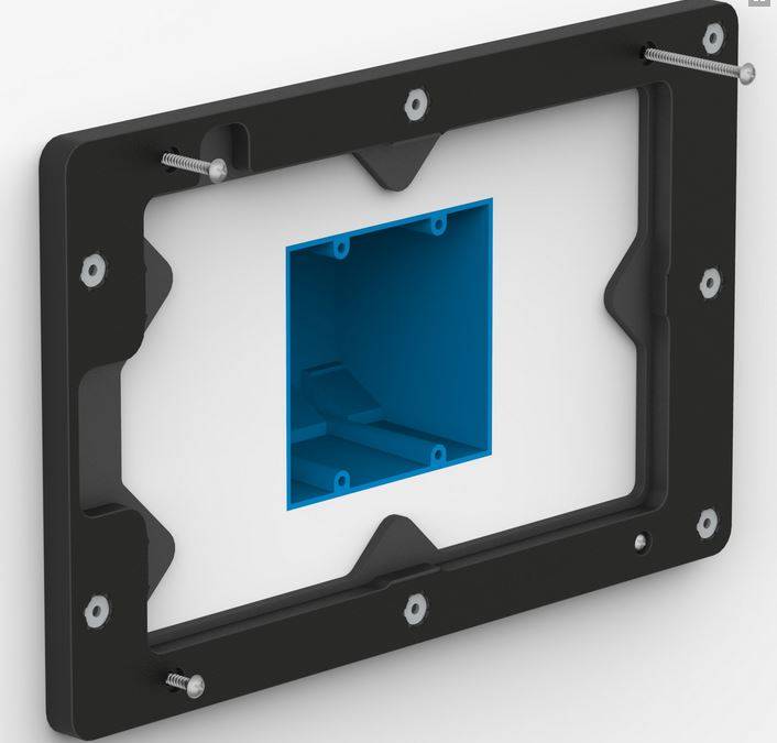 Een kunststof low-profile wandhouder met verwijderbare frontplaat geschikt voor iPad Mini 4 & 5. Zeer geschikt voor domotica oplossingen in huis en bedrijf (geen anti-diefstal voorziening).