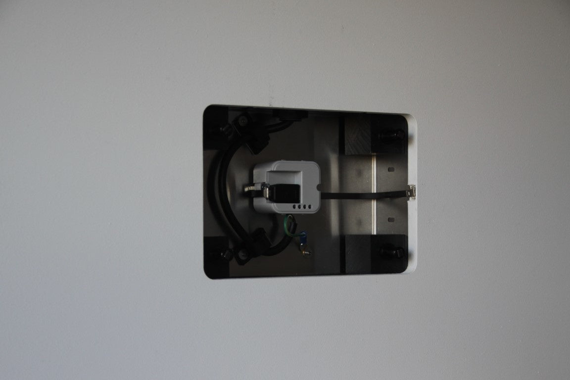 Het volledige frame is met precisie vervaardigd uit gips (wDOCK) en kan op verschillende manieren afgewerkt worden zodat het een eenheid krijgt met de wand of muur. De inbouw behuizing is gemaakt van Inox.